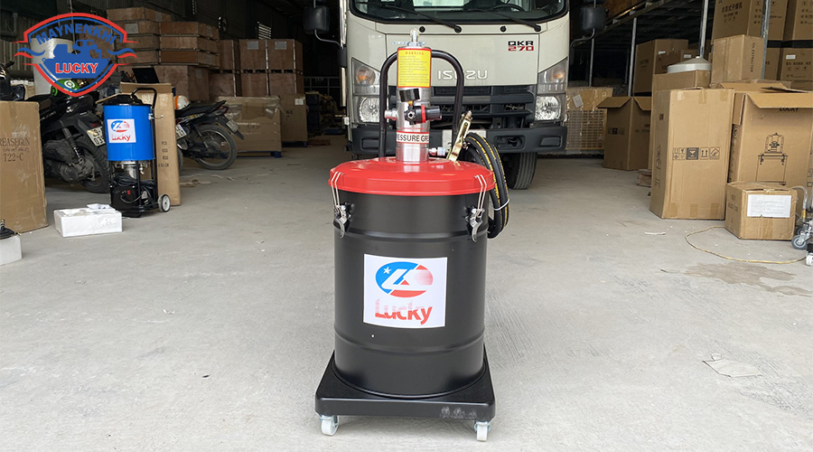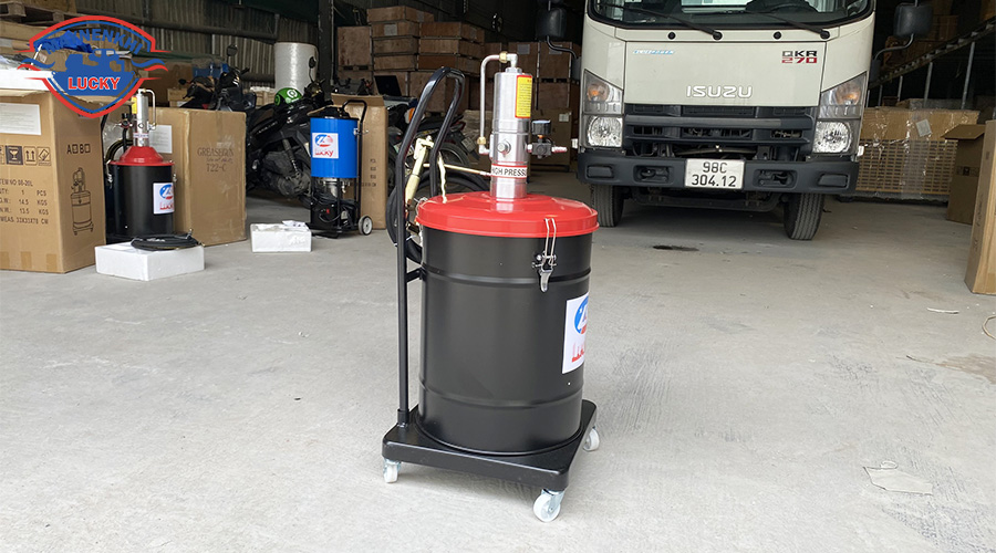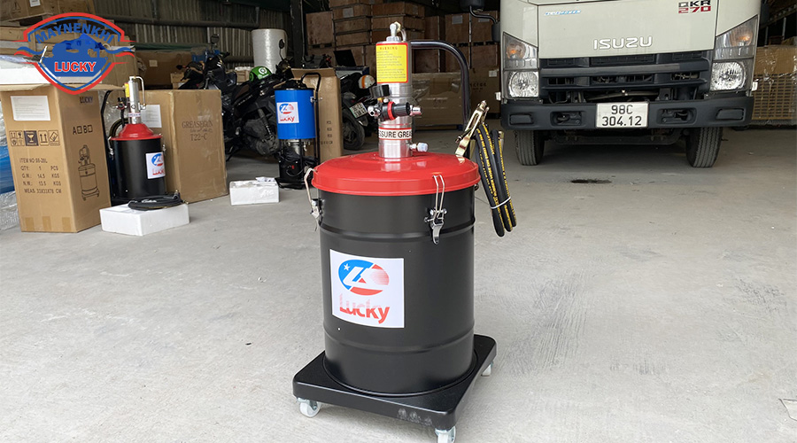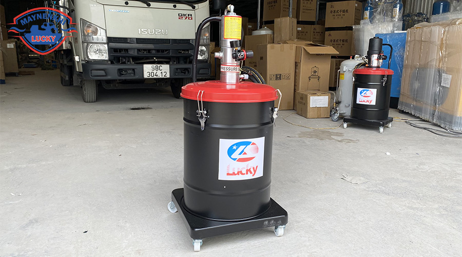 Tổng kho máy nén khí Lucky là đơn vị chuyên cung cấp máy bơm mỡ khí nén chính hãng với đa dạng dung tích từ 12L, 20L đến 40L. Máy bơm mỡ có sẵn tại kho bạn có thể đến trực tiếp để test máy.